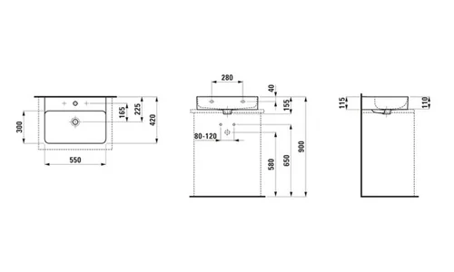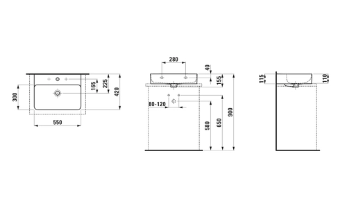 LAUFEN VAL Countertop washbasin, without tap hole, with overflow, US closed 550x420mm
