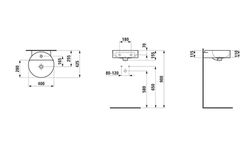 LAUFEN VAL wash hand basin, undermount, without tap hole, without overflow, 400x425mm