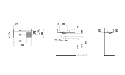 LAUFEN VAL washbasin COMPACT, without tap hole, with overflow, 600x315mm, semi-dry area right