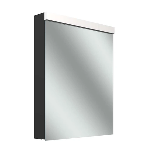 Schneider LOW plus LED mirror cabinet, 1 door 60cm, exchangeable stop, 595x120x747mm, socket left, lighting top