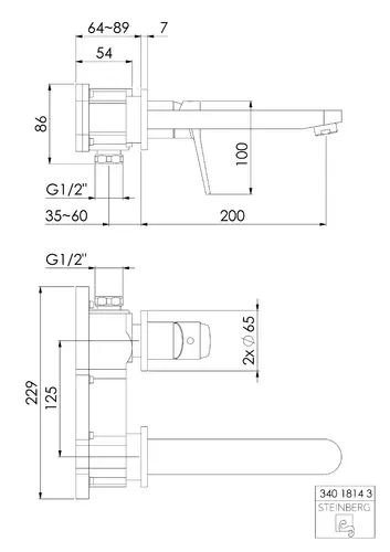 Steinberg 340 collection wall-mounted basin mixer, 200mm projection, for concealed installation