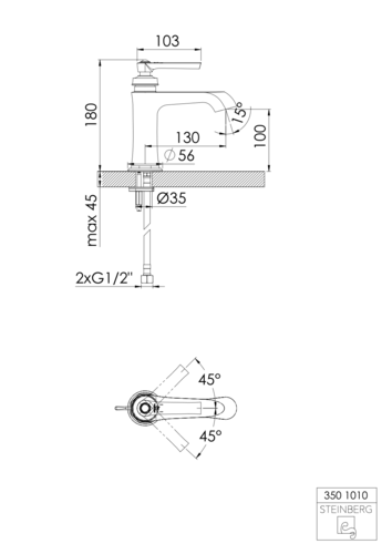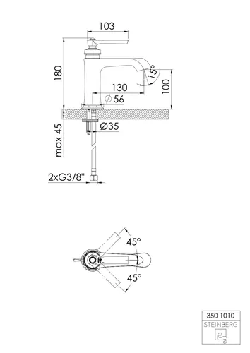 Steinberg Seriess 350 basin mixer, without drain set, projection 130mm, 0