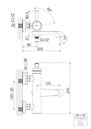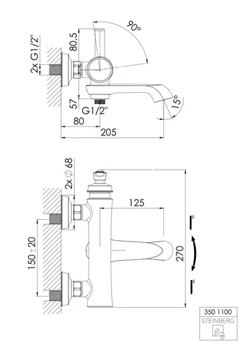 Steinberg Seriess 350 bath faucet, exposed, projection 205mm, 2 consumers