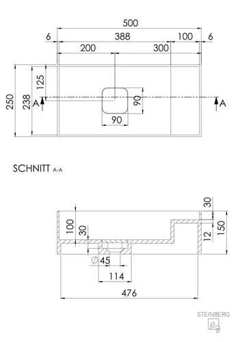 Steinberg Seriess 440 countertop washbasin, angular, without overflow, 500x250x150mm, SOLIDSurface