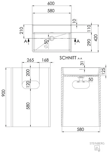 Steinberg Seriess 540 pedestal washbasin, floor-standing, angular, with overflow, 600x420x900mm