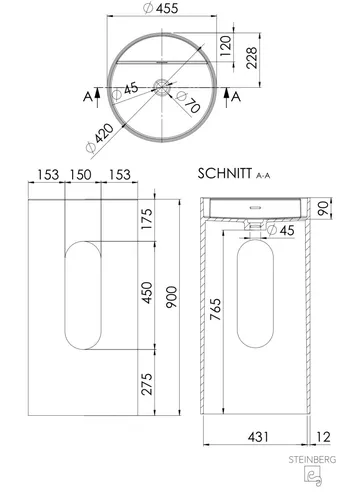 Steinberg Seriess 540 pedestal washbasin, floor-standing, round, with overflow, 455x455x900mm