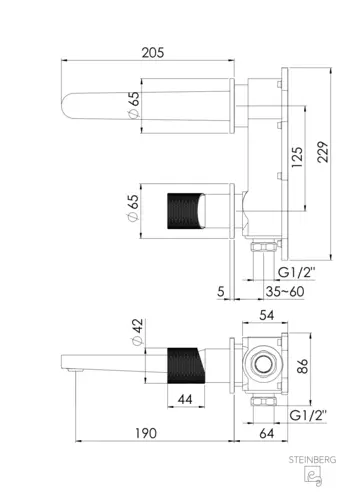 Steinberg Seriesss 171 wall-mounted basin mixer, projection 190mm, concealed