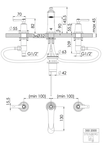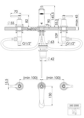 Steinberg Seriesss 350 basin mixer, 3-hole, with drain set, 130mm projection, 0
