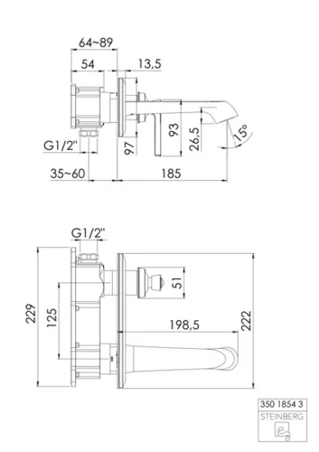 Steinberg Seriesss 350 basin mixer, pre-mounted set, projection 180mm, 3