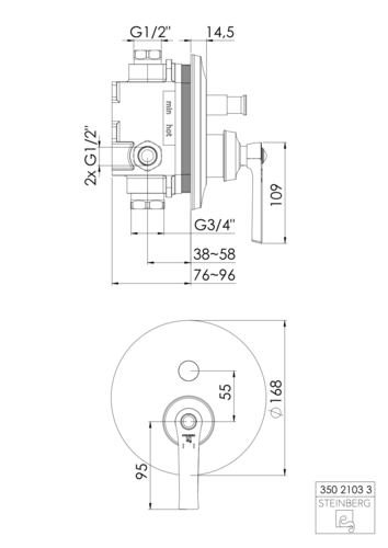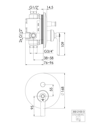 Steinberg Seriesss 350 bath/shower mixer, ready-mounted set, 2 consumers, with diverter, 3