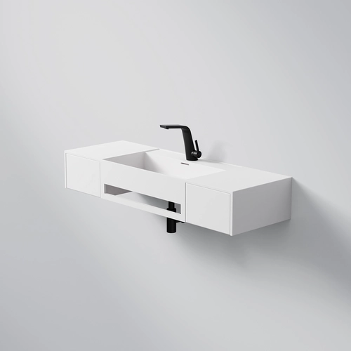 Steinberg Seriesss 443 wall-mounted washbasin, 2 drawers, with towel rail, 1200x400x200mm, 1 tap hole, with overflow, SOLIDSurface