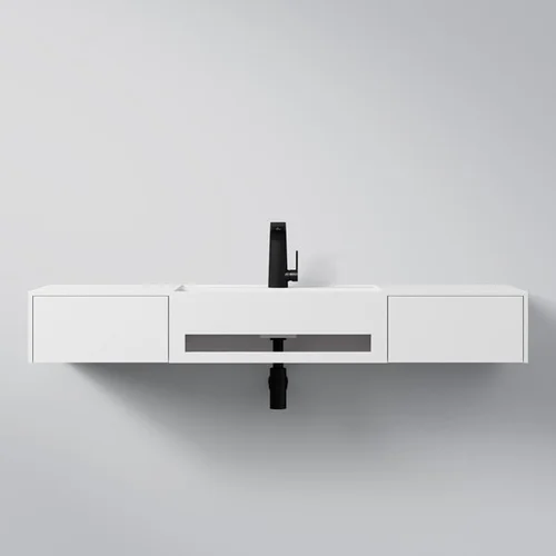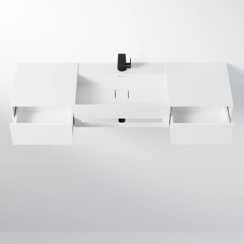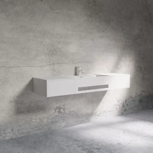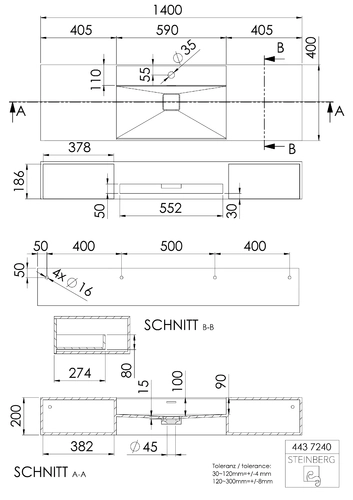 Steinberg Seriesss 443 wall-mounted washbasin, 2 drawers, with towel rail, 1400x400x200mm, 1 tap hole, with overflow, SOLIDSurface
