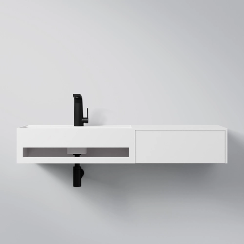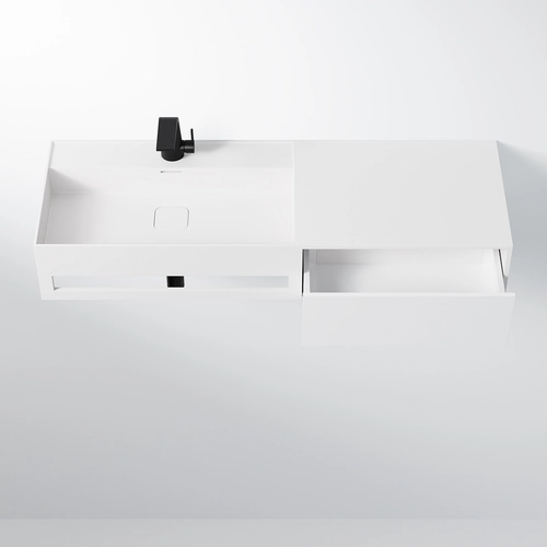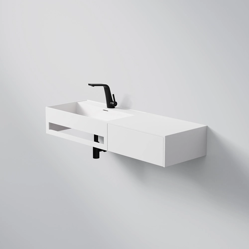 Steinberg Seriesss 443 wall-mounted washbasin, pull-out right, towel rail left, 1200x400x200mm, 1 tap hole, with overflow, SOLIDSurface