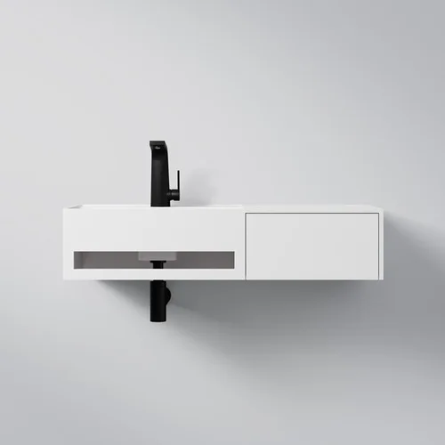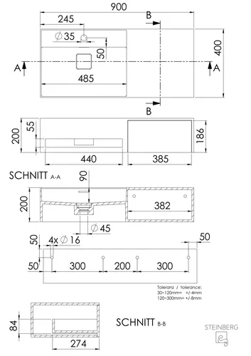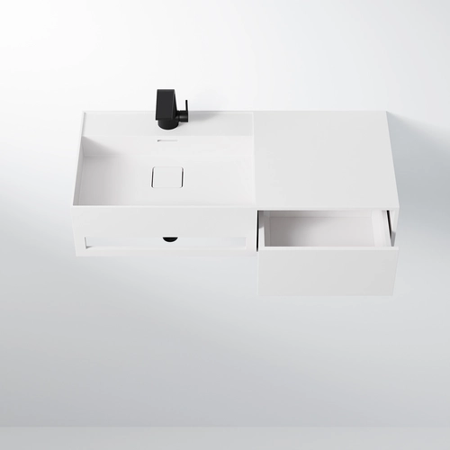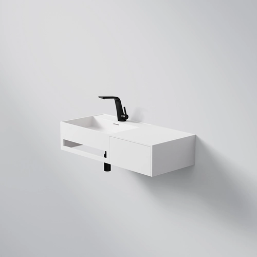 Steinberg Seriesss 443 wall-mounted washbasin, pull-out right, towel rail left, 900x400x200mm, 1 tap hole, with overflow, SOLIDSurface