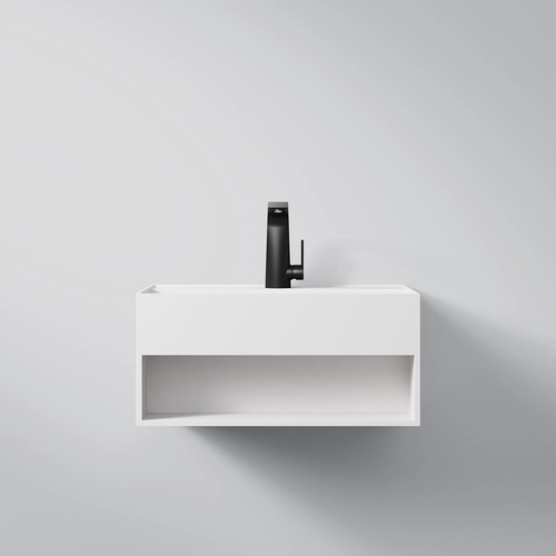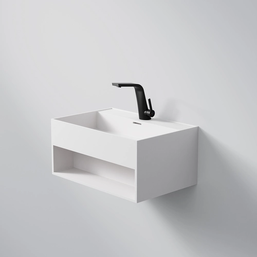 Steinberg Seriesss 443 wall-mounted washbasin, with open compartment, 600x400x280mm, 1 tap hole, with overflow, SOLIDSurface