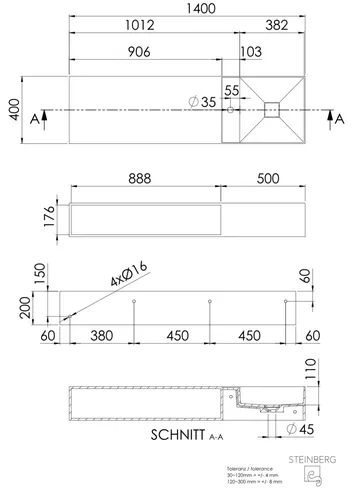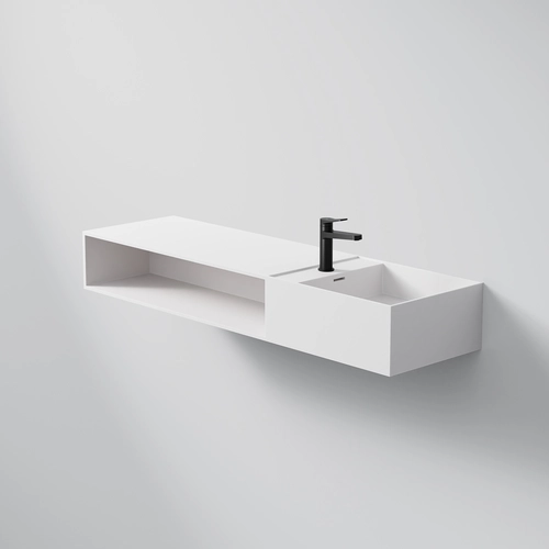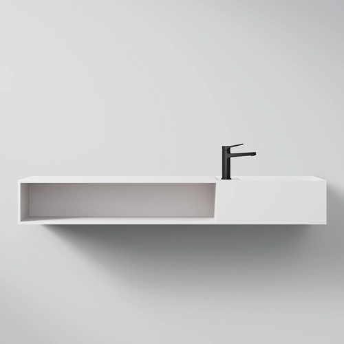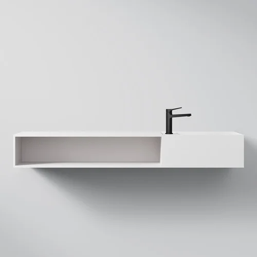 Steinberg Seriesss 443 wall-mounted washbasin, with open compartment left, 1400x400x200mm, 1 tap hole, with overflow, SOLIDSurface