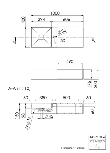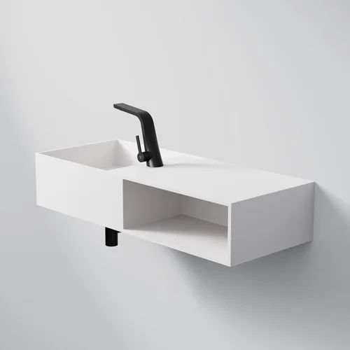 Steinberg Seriesss 443 wall-mounted washbasin, with open compartment on the right, 1000x400x200mm, 1 tap hole, with overflow, SOLIDSurface