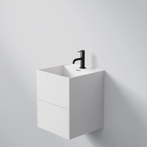 Steinberg Seriesss 443 wall-mounted washbasin, with pull-out, 400x400x500mm, 1 tap hole, with overflow, SOLIDSurface