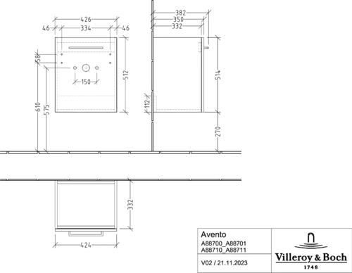 Villeroy & Boch Avento washbasin vanity unit, 1 door, stop right, 430x514x384mm, handle Chrome glossy