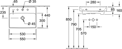 Villeroy & Boch Collaro washbasin, 1 tap hole, without overflow, 550x440mm