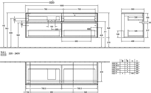 - 1600 x 548 x 500 mm