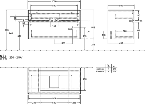 Villeroy & Boch Collaro washbasin vanity unit, 2 pull-outs, washbasin centre, wall-mounted, 1000x548x500mm