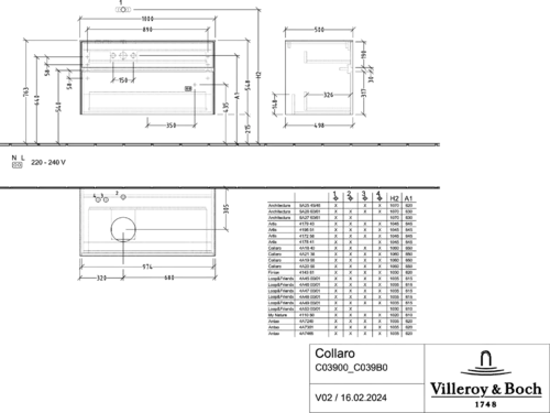 Villeroy & Boch Collaro washbasin vanity unit, 2 pull-outs, washbasin left, 1000x548x500mm