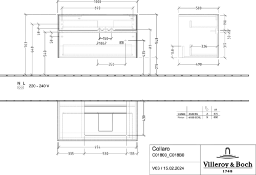 Villeroy & Boch Collaro washbasin vanity unit, 2 pull-outs, washbasin right, wall-hung, 1000x548x500mm