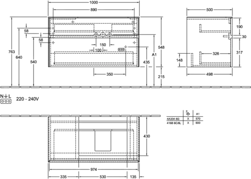 - 1000 x 548 x 500 mm