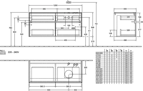 - 1200 x 548 x 500 mm