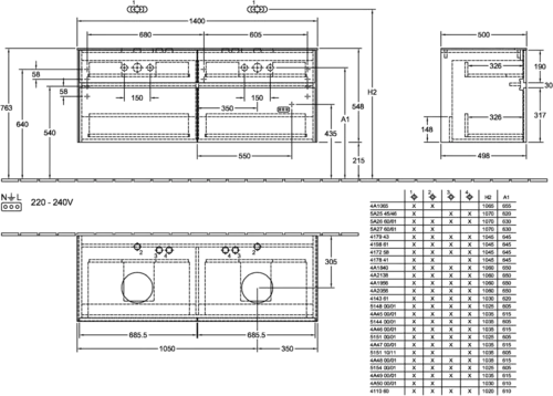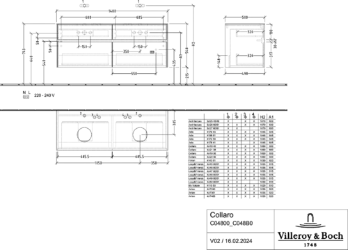 Villeroy & Boch Collaro washbasin vanity unit, for 2 washbasins, 1400x548x500mm