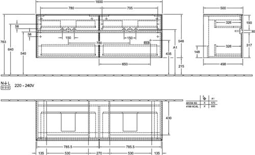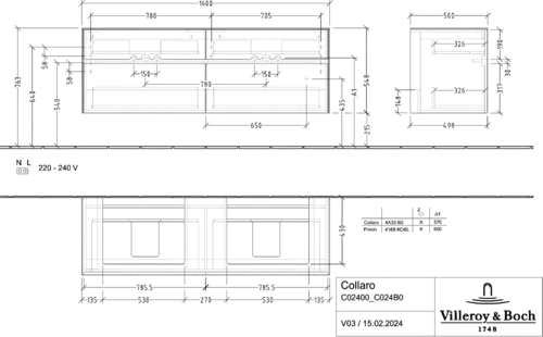 Villeroy & Boch Collaro washbasin vanity unit, for 2 washbasins, 1600x548x500mm