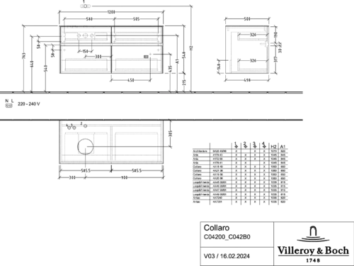 Villeroy & Boch Collaro washbasin vanity unit, wall-mounted, 4 SoftClose pull-outs, washbasin left, 1200x548x500mm