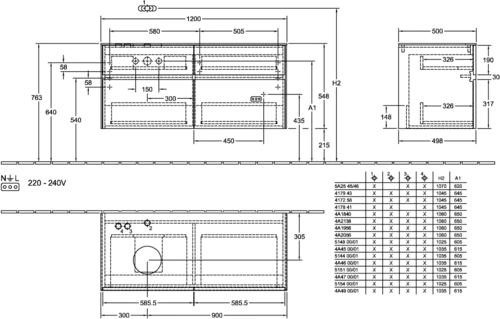- 1200 x 548 x 500 mm