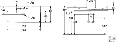 Villeroy & Boch Finion washbasin, without overflow, 1 tap hole, 1000x470mm