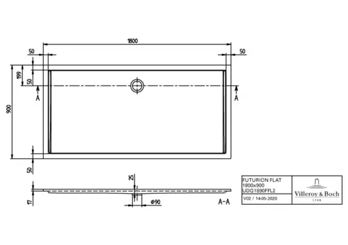Villeroy & Boch Futurion Flat shower tray, rectangular, Quaryl®, 1800x900mm