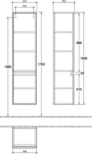 Villeroy & Boch Legato tall cabinet, 400x1550x350mm, hinged right, 2 doors