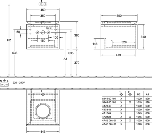 - Can be combined with: Architectura 5A25 45/46, 5A26 60/61, 5A27 60/61, Artis 4179 43, 4198 61, 4172 58, 4178 41, Collaro 4A18 40, 4A21 38, 4A19 56, 4A20 56, Finion 4143 61, Loop & Friends 4A45 00/01, 4A46 00/01, 4A47 00/01, 4A48 00/01, 4A49 00/01, 4A50 00/01, My Nature 4110 80/60, please order defined washbasins separately
