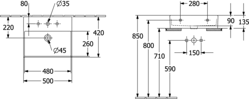 Villeroy & Boch Memento 2.0 wall-mounted washbasin, 1 tap hole, with overflow, polished, 500x420mm