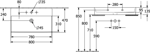 Villeroy & Boch Memento 2.0 wall-mounted washbasin, 1 tap hole, without overflow, polished, 800x470mm
