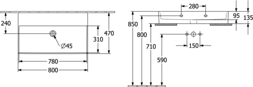 Villeroy & Boch Memento 2.0 wall-mounted washbasin, without tap hole, without overflow, polished, 800x470mm