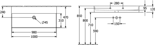 Villeroy & Boch Memento 2.0 wall-mounted washbasin, without tap hole, without overflow, unpolished, 1000x470mm