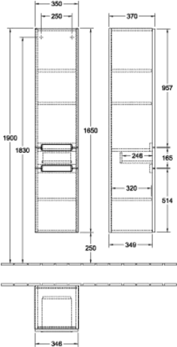 Villeroy & Boch Subway 2.0 tall cabinet, 2 doors and 1 drawer, hinged right, 350x1650x370mm