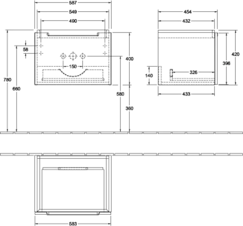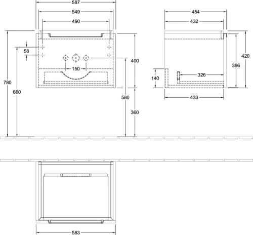 Villeroy & Boch Subway 2.0 washbasin vanity unit, 1 drawer, washbasin centre, 587x420x454mm