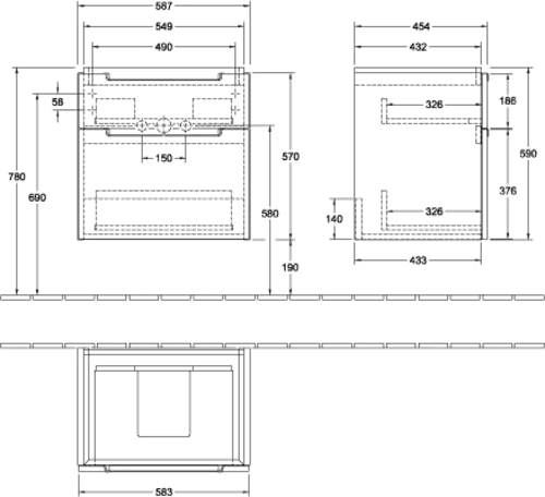 Villeroy & Boch Subway 2.0 washbasin vanity unit, 2 pull-outs, washbasin centre, 587x590x454mm