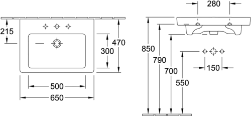 Villeroy & Boch Subway 2.0 washbasin, with overflow, 1 tap hole, 650x470mm