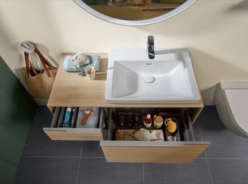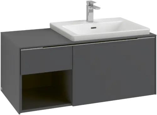Villeroy & Boch Subway 3.0 washbasin base unit, 2 pull-outs, washbasin on the right, shelf unit bottom left, 1001x422.5x516mm
