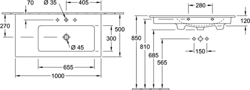 Villeroy & Boch Venticello cabinet washbasin, basin right, without tap hole, with overflow, 1000x500mm