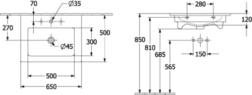 Villeroy & Boch Venticello washbasin, without tap hole, with overflow, 650x500mm