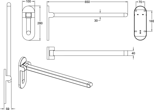 Villeroy & Boch ViCare Design folding handle, 650x280mm